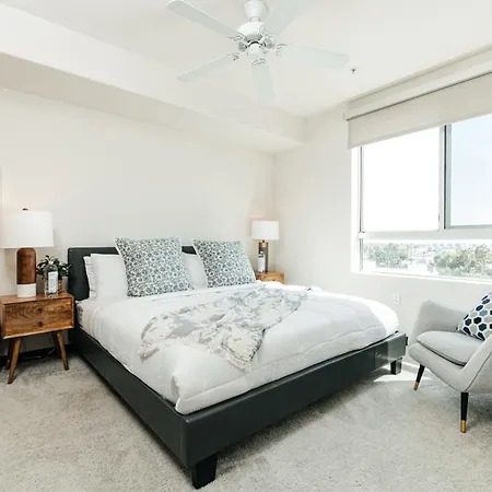 Een complete keuken heeft een oven en een vaatwasser voor het bereiden van maaltijden. 7th St/Metro Center treinstation is maar op rijafstand van 20 minuten vanaf dit appartement van 84 m². Na een dag vol activiteiten is ontspannen bij een privézwembad een perfecte optie.